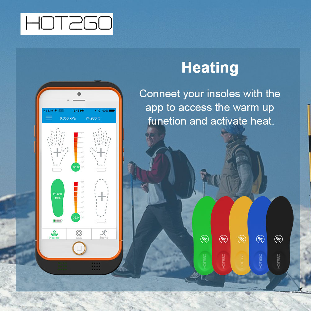 【Smartphone APP Control】Bluetooth wireless control, can check the insole temperature and battery power at any time on the Mobile App, Free App installed in IOS and Android